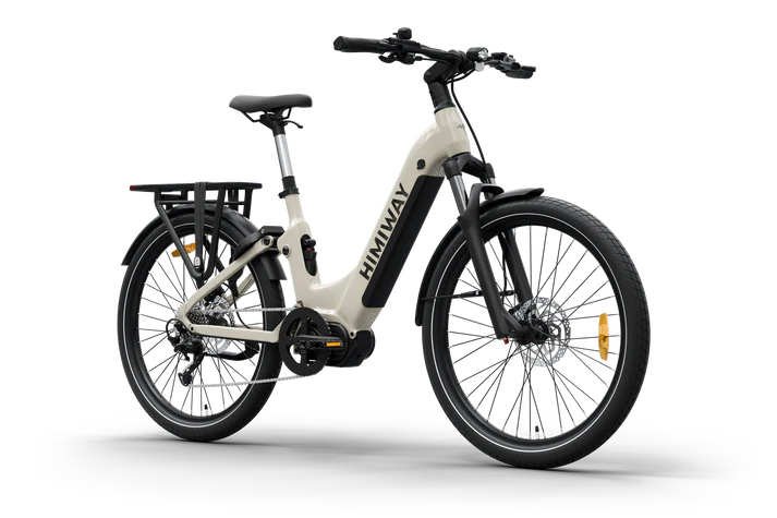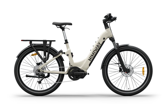 “Equipped with a responsive torque-sensing mid-motor, the A7 Pro offers swift, powerful ascents and quick starts, ideal for challenging terrains.The A7 Pro’s torque sensor intelligently adjusts electric assist in real-time, ensuring efficient, controlled cycling. This precise modulation offers a smoother ride, conserving energy while enhancing rider safety and stability.Flawless aerospace-grade aluminum frame, expertly polished for a seamless, weld-free finish.Seamlessly blends mountain bike technology into urban cycling, enhancing comfort, safety, and providing a smoother ride by effectively absorbing shocks and reducing vibrations.High-capacity 720Wh LG battery, 48V 15Ah, detachable and built with durable 21700 Li-ion cells for extended range and performanceSafeguarding your ride with intelligent battery protection for enhanced longevity and performance.Auto-Illuminating Brake LightFrame-integrated taillights illuminate automatically upon braking, enhancing safety and visibility for night riding.9 Speed Gear Shift SystemVersatile shifting for optimal control in diverse riding conditions, complemented by a responsive pedal-assist system to tailor your ride perfectly.Hydraulic disc brakeExceptional, lasting stopping power with minimal maintenance for safer, cost-effective riding.Secure with a ClickRobust, integrated rear-wheel lock for enhanced security. Designed for theft deterrence and resilience against daily wear and extreme weather.Throttle Thumb throttle | Shimano shift | Bell48V Spotlight 500LM luminosityIntegrated Display 3.5″ full color digital screenControl on-off gear shift settings”Redefine your commute with the Himiway A7 Pro—an Urban Electric Commuter Bike that combines style, speed, and efficiency for city living!””