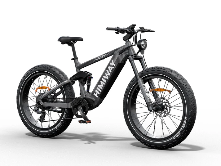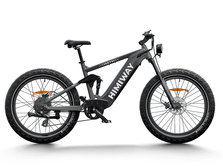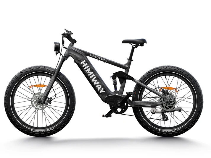 “It is the first e-bike on the U.S. market with four-bar linkage suspension technology, complemented with 4.8” CST fat tires, these specialize in absorbing both rear-upward force and vibrations, which allows you to ride safely over rutted trails, deep snow, and soft sand without taxing the rider.The 6061 aluminum alloy frame offers excellent strength and durability while remaining lightweight, allowing you to easily maneuver the bicycle. It also possesses good corrosion resistance and anti-oxidation properties, ensuring that the frame stays fresh and durable over extended periods.It combines the new Samsung/LG battery technology with a 5000mAh single cell capacity in a smaller size but with larger diversity. Compared with 3500mAh cells made of nickel, cobalt, and manganese, this 960Wh battery efficiently improves the range, stability, and safety of Himiway bikes. A single charge can last up to 60 miles on pure electric power and 80+ miles with pedal assist. The battery will maintain 80% capacity after 1000 charges.Safeguarding your ride with intelligent battery protection for enhanced longevity and performance.1000W Upgraded Brushless Geared Hub Motor Use the latest updated inner ring specialized in high temperature resistance and better heat dissipation, which can reduce the motor magnets’ attenuation speed to guarantee a longer life expectancy. The 1000W brushless gear hub motor can help you conquer even the most rugged terrain easily.You can think of the FOC as the brain controlling the motor in real-time. It recognizes your riding conditions and instantly calls on the motor for optimal performance. The FOC measures scooter diagnostics, which you as a driver cannot see, and then decides how to respond to your driving inputs.The Backlit LED display provides information on speed, mileage, power, etc.The D7 is equipped with rugged, all-terrain tires designed for superior grip and stability, capable of handling both mountainous paths and urban pavement with ease. The innovative hydroplaning-resistant tread pattern elevates its capabilities, ensuring riders enjoy a seamless cycling experience across diverse landscapes.Hydraulic brakes provide superior braking performance and durability. With proper maintenance, there won’t be a decline in braking power for 5 years.The intuitive torque sensor seamlessly amplifies your pedaling efforts, providing a more natural riding experience while conserving battery life and extending riding range.Thumb ThrottleThe thumb throttle are designed for professional cycling enthusiast. Your both hands are more capable of keeping the balance of Himiway Cobra.Shimano 8 Speed Gear Shift SystemThe Shimano 8 speed gear shift system offers you more choice while riding in a variety of conditions. Along with the pedal-assist system, you can find the speed that suits your journey. Using this system accurately can increase the range of a single charge by up to 15%.Front Fork: Coil SuspensionThe durable Himiway suspension fork has preloaded adjustments for the spring’s stiffness and a lock-out lever. With 80mm of available compression, it is the perfect fit for your chosen terrain.Durable Aluminum CranksetDurable aluminum crankset guards provide protection to the chainring and assists the chainstay while traveling over rugged terrain.Selle Royal SaddleThe Selle Royal Saddle features a comfortable design specially made for pressure relief.48V Luminosity TaillightThe Himiway independent R&D luminosity taillight is 20% brighter than LED light. Visibility is improved to guarantee your safety while riding at night.Conquer any terrain with power and style—ride the Himiway D7 (Cobra) Full Suspension Electric Bike and unleash your adventure!”